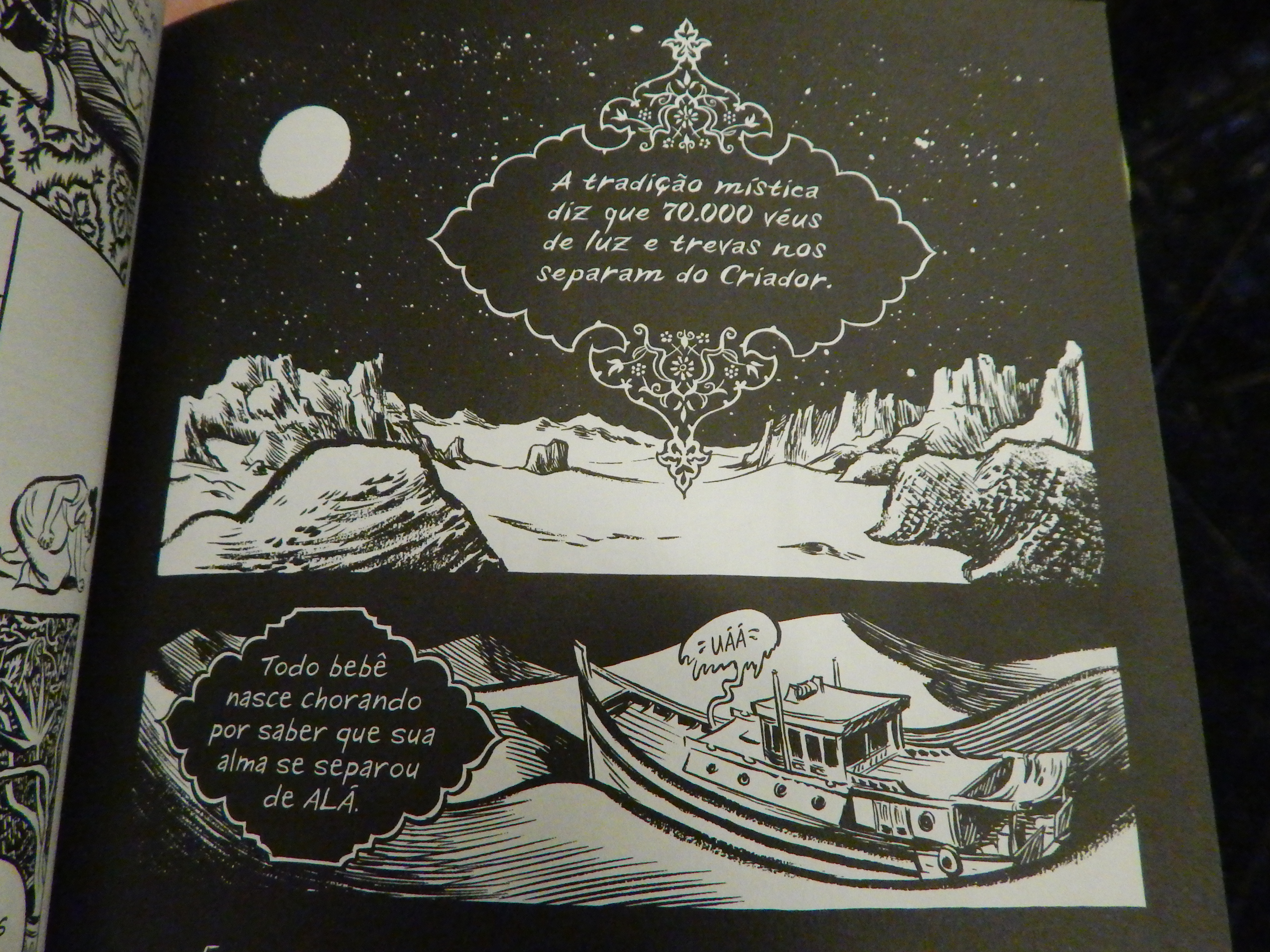 A magia também está presente nas histórias contadas por Dodola, que são parte muito importante da obra – todas ligadas ao Islã, são as equivalentes muçulmanas de histórias bem familiares ao leitor ocidental: Abraão sacrificando o filho, Noé construindo a arca, a vida de Moisés e os feitos do rei Salomão. A HQ nos mostra versões muito impactantes e bonitas dessas narrativas. Cheias de poesia e com um tom mítico encantador, elas se entrelaçam à vida de Dodola e Zam, lhes dando motivação, medo, esperança.